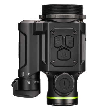 El manejo es silencioso, intuitivo y ambidiestro, gracias a su diseño de tres botones, rueda de enfoque suave y un mando a distancia Bluetooth con base magnética para accionarlo desde el arma sin necesidad de mover la posición de tiro. Incluye seis paletas de colores (Blanco-caliente, Negro-caliente, Arcoíris, Rojo-caliente, Verde-caliente y Sepia), función de seguimiento de puntos calientes, calibración automática y manual, modo “pantalla apagada” para ahorrar energía y medidor de distancia estadiométrico integrado.