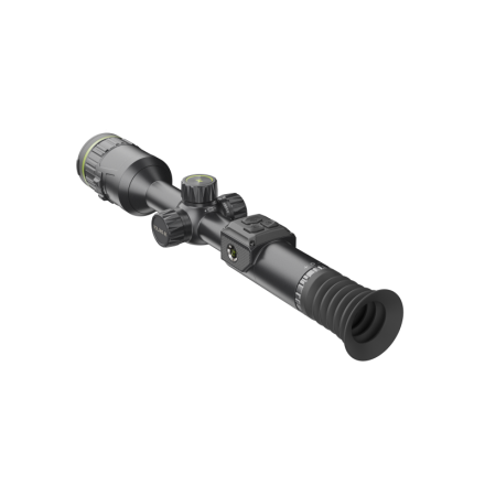 El visor tiene certificación IP67, con carcasa metálica ligera y resistente, funcionando en temperaturas de -30 °C a +65 °C y soportando lluvia, polvo y niebla. Su batería recargable 18650 proporciona hasta 5,5 horas de autonomía por unidad.