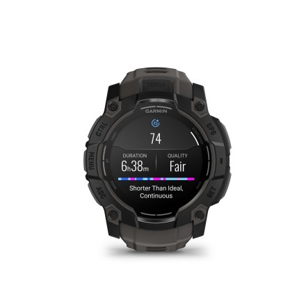 En el terreno de la salud, el Instinct 3 monitoriza tu frecuencia cardiaca, sueño avanzado, pulsioximetría, estrés, respiración, hidratación, edad fisiológica, salud femenina, variaciones respiratorias y mucho más. Con el Morning Report sabrás cada mañana tu estado, sueño, recuperación y métricas clave. También podrás registrar un Resumen de salud de 2 minutos para obtener estadísticas que podrás compartir con profesionales sanitarios.
