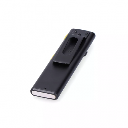 Su uso es intuitivo: un botón ON/OFF controla las funciones principales, mientras que un pulsado de 2 segundos permite cambiar entre modos de color (frío/cálido). Su clip lateral facilita engancharla en bolsillos o mochilas, mientras que la base magnética permite fijarla en superficies metálicas, ofreciendo un apoyo perfecto para trabajos con manos libres.