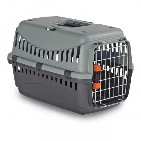 Fabricado en plástico resistente con puerta metálica, ofrece una estructura sólida y una ventilación adecuada. La puerta con cierre de seguridad evita aperturas accidentales, aportando tranquilidad durante el transporte.