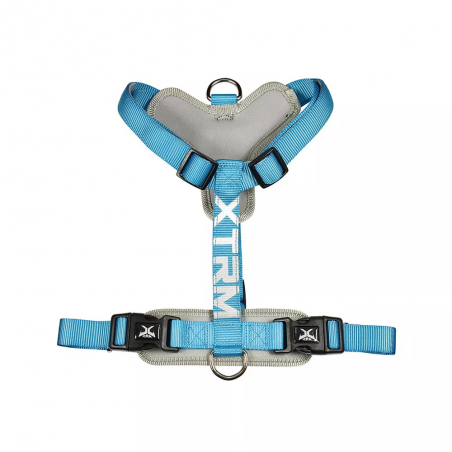 Arnés X-TRM Cronos Neon Flash de Nayeco, azul, ajustable (35–60 × 1,5 cm) y extra confortable. Con costuras reflectantes, doble cierre en click, acolchado en 3 zonas y 5 puntos de regulación. Ideal para uso diario y entrenamiento.