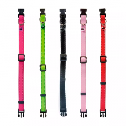 Collar para gato Mac Leather de Nayeco, en colores surtidos, ajustable y con cierre de seguridad. Fabricado en charol de alta calidad, cómodo y seguro para la mascota.